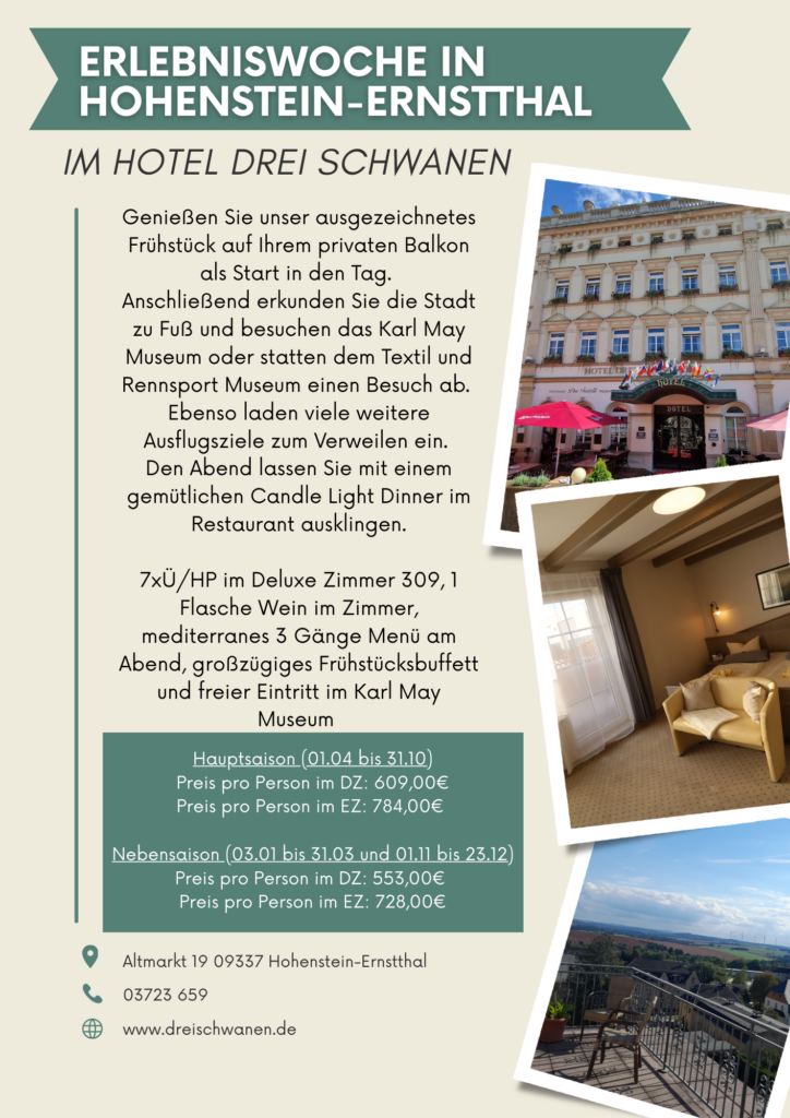 Elegant und zentral gelegenes Hotel am Fuße des Erzgebirges in Hohenstein-Ernstthal