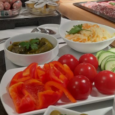 Ein besonderes Highlight ist unser Frühstücksbuffet mit Welcome Sekt, Kaffee, Kaffeespezialitäten, Tee, Säfte & Mineralwasser, kalte & warme Frühstücksspezialitäten.
